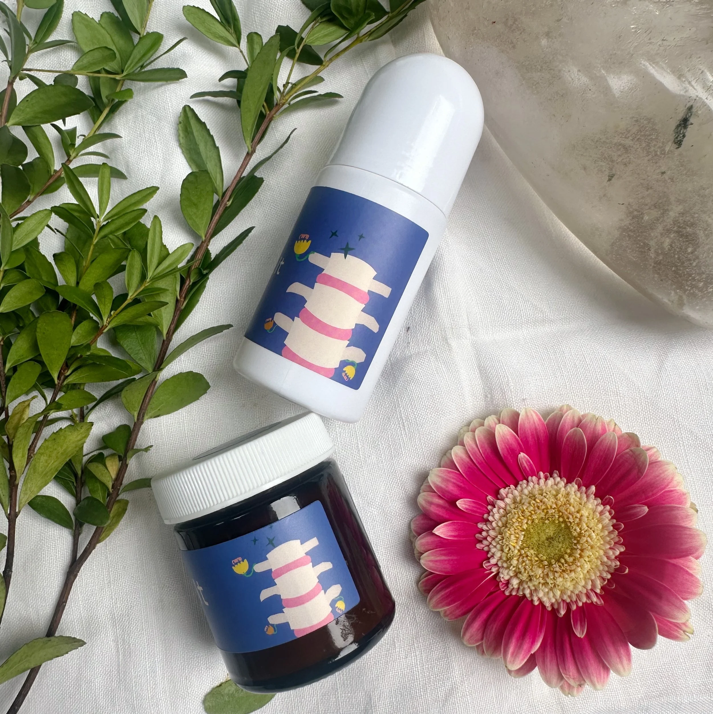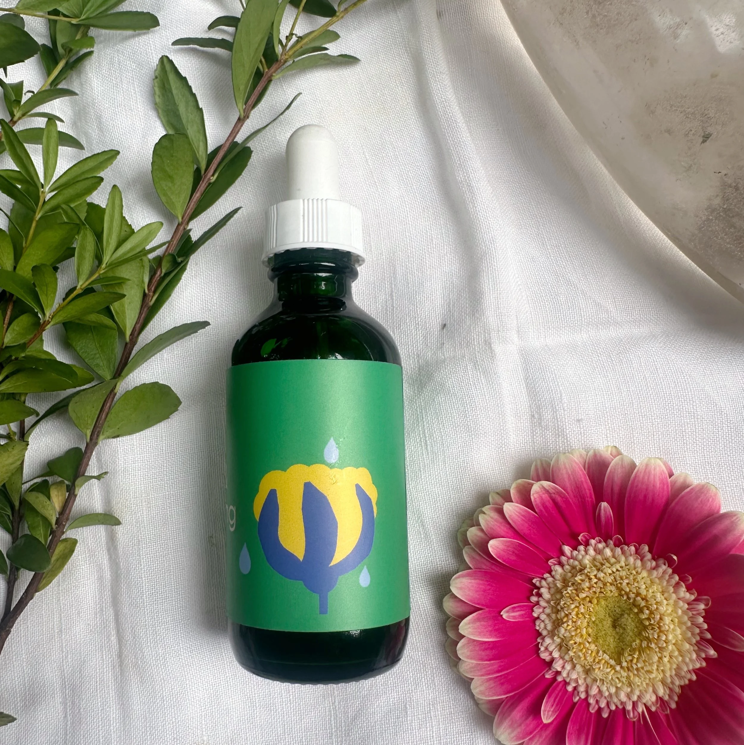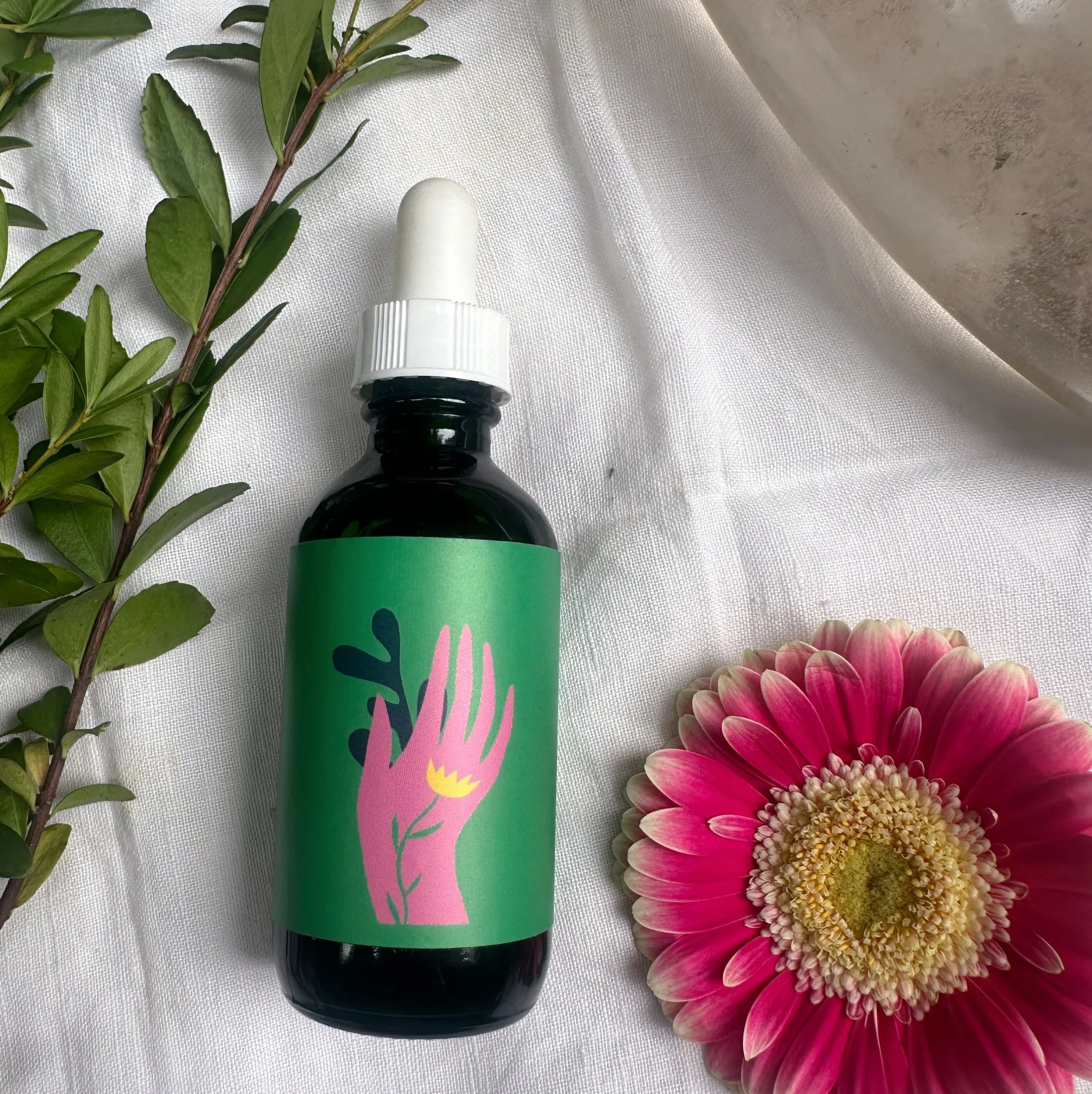 • Locally garden-grown & wild-foraged, these Motor Oils are, like me in a jumpsuit, very two-fold. They crank up what organic castor oil already does best — revving up blood flow and smoothing scar tissue — while also pulling a whole pageant of tricks: heating, cooling, uterine toning, hormonal harmonizing, digestive soothing, and yes… even emotional pit-crew support