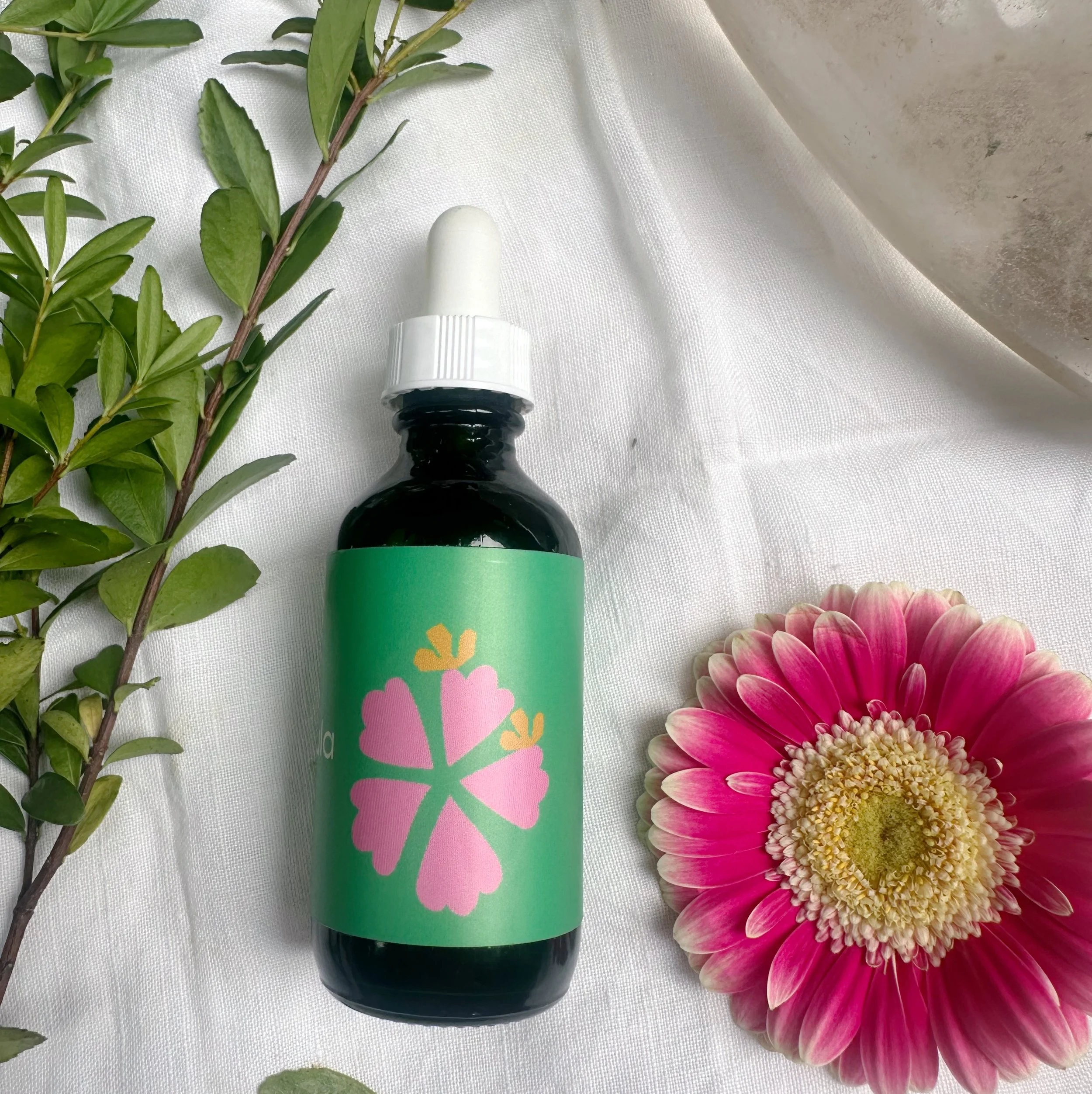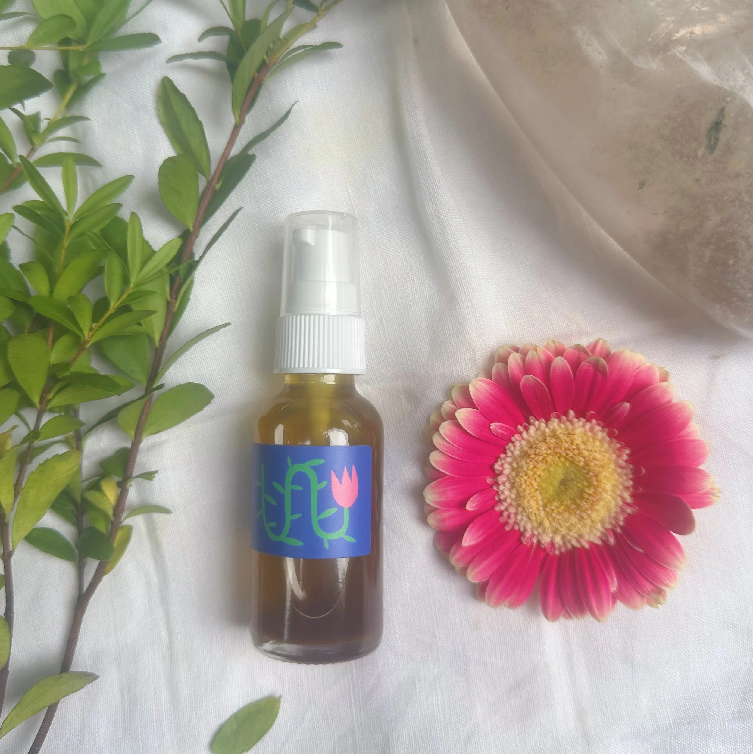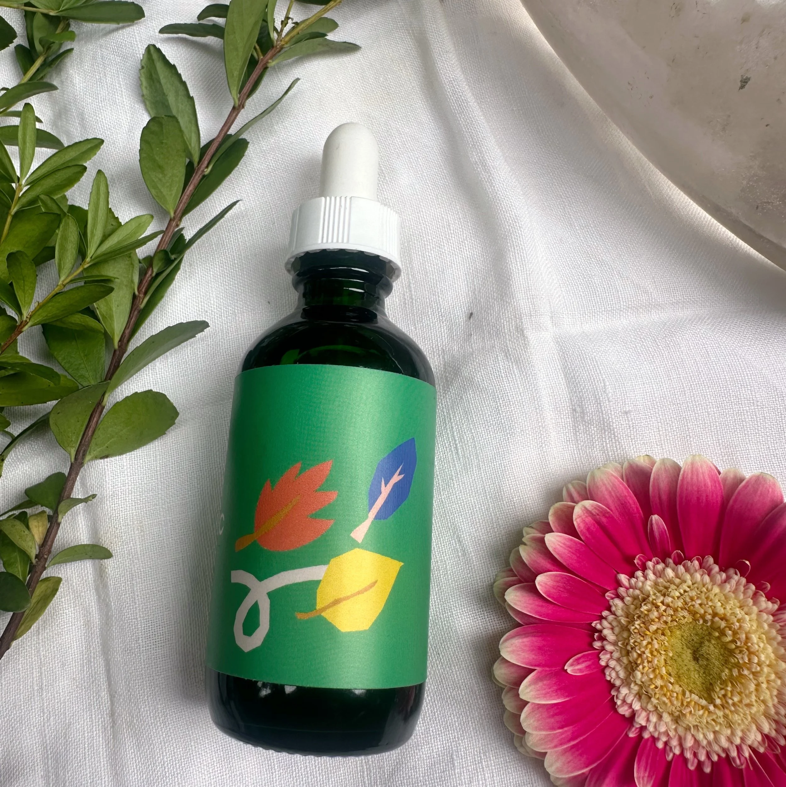 • Locally garden-grown & wild-foraged, these Motor Oils are, like me in a jumpsuit, very two-fold. They crank up what organic castor oil already does best — revving up blood flow and smoothing scar tissue — while also pulling a whole pageant of tricks: heating, cooling, uterine toning, hormonal harmonizing, digestive soothing, and yes… even emotional pit-crew support