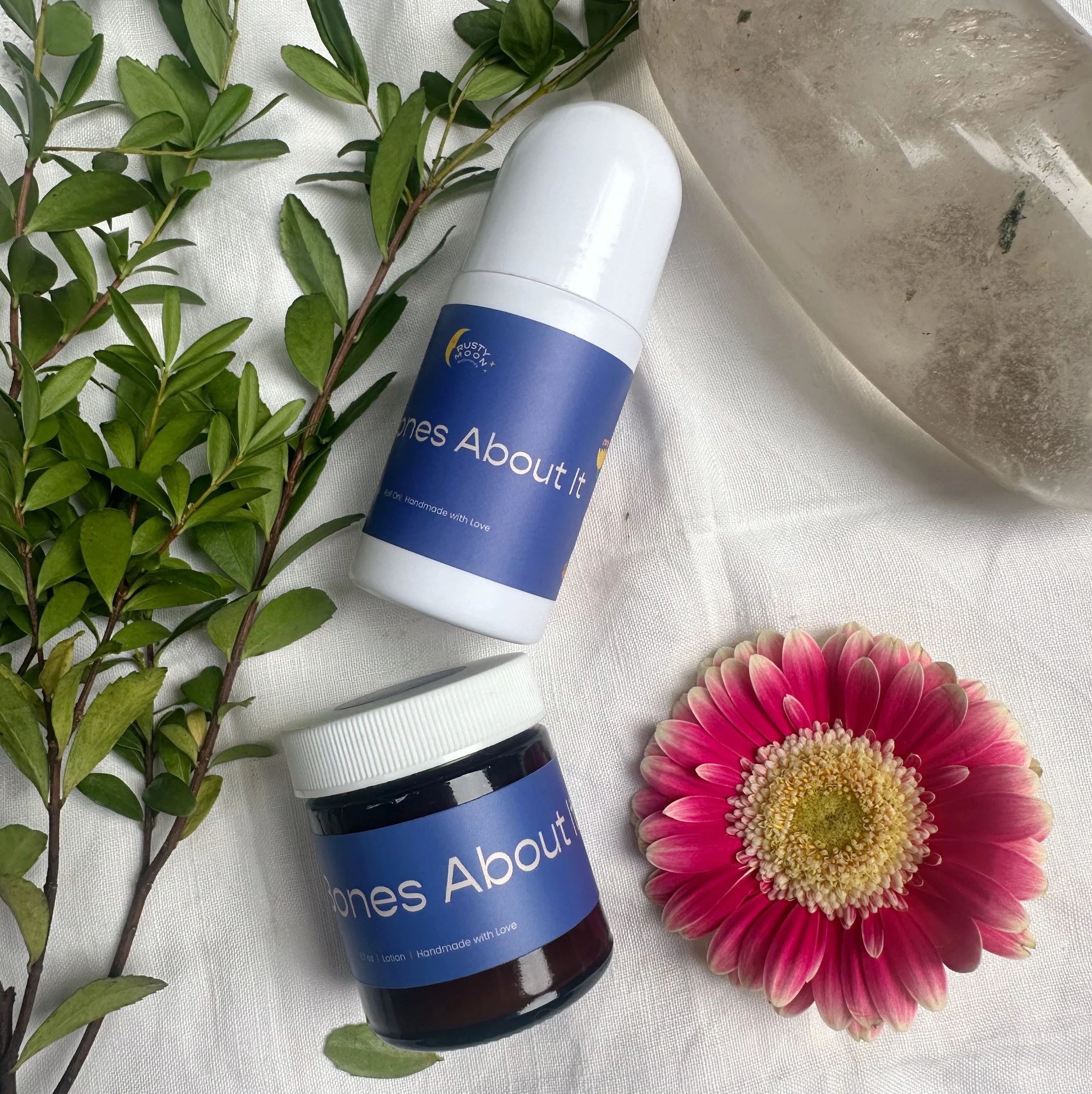 “No Bones About It Roll On- I love the roll-on as much as I do the lotion, it really helps ease my pain but I also get the benefit of the pressure of the application. I have scar tissue after a total knee replacement and the pressure I use along with the product greatly helps, not only pain but breaking up scar tissue. It also helps reduce inflammation and has a wonderful cooling effect.  I would highly recommend it.”